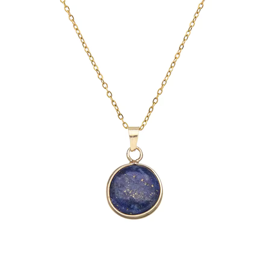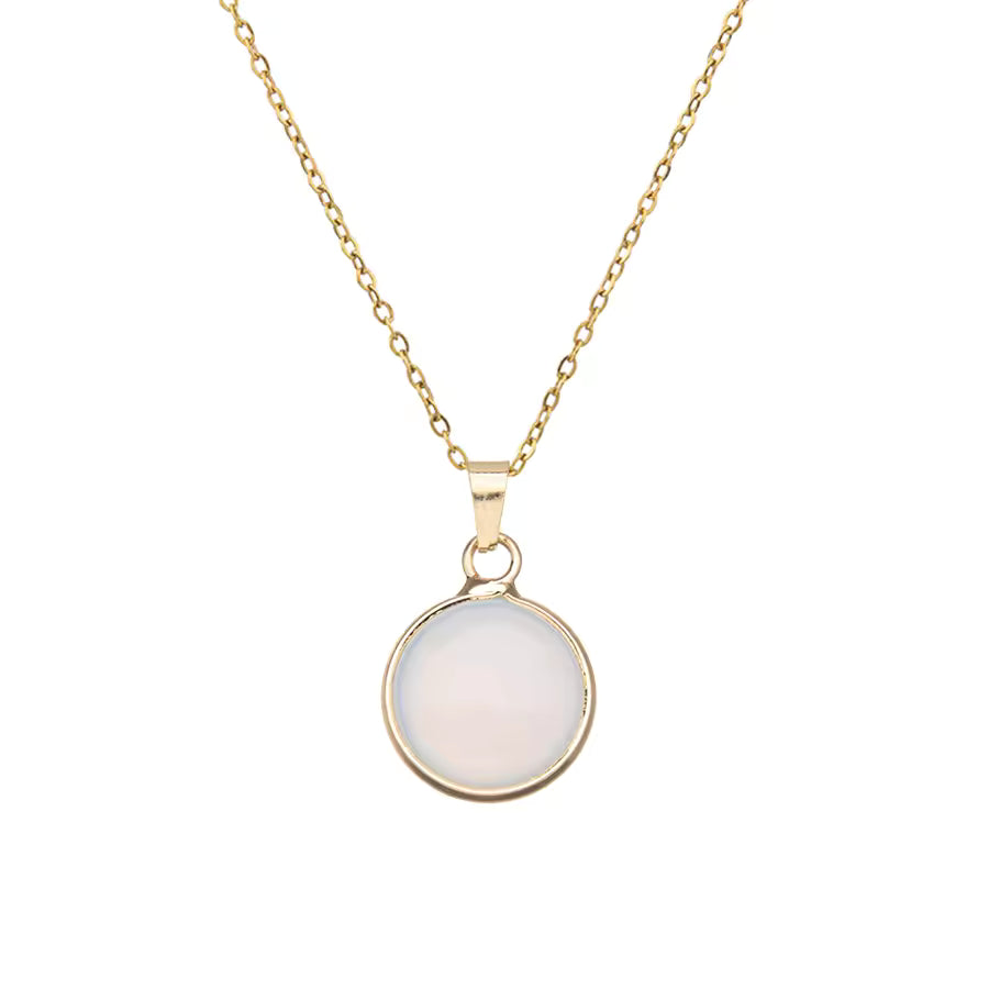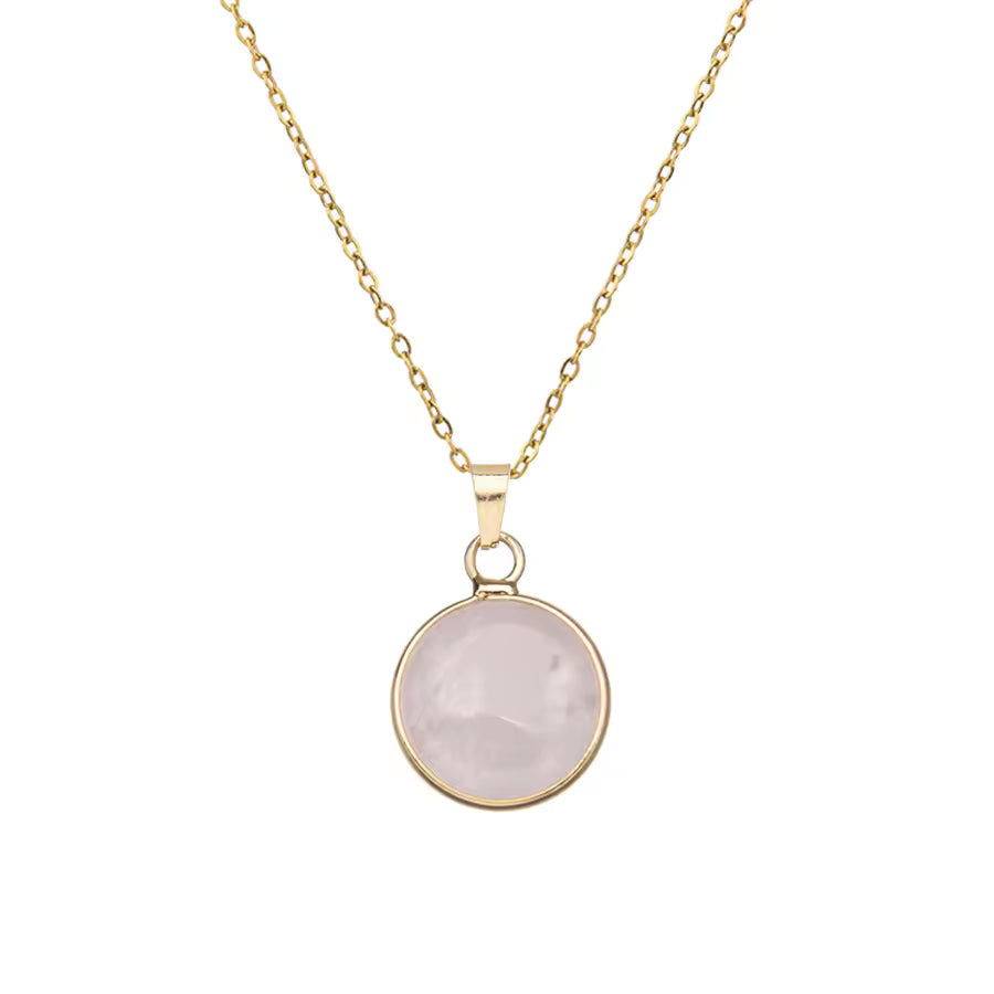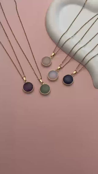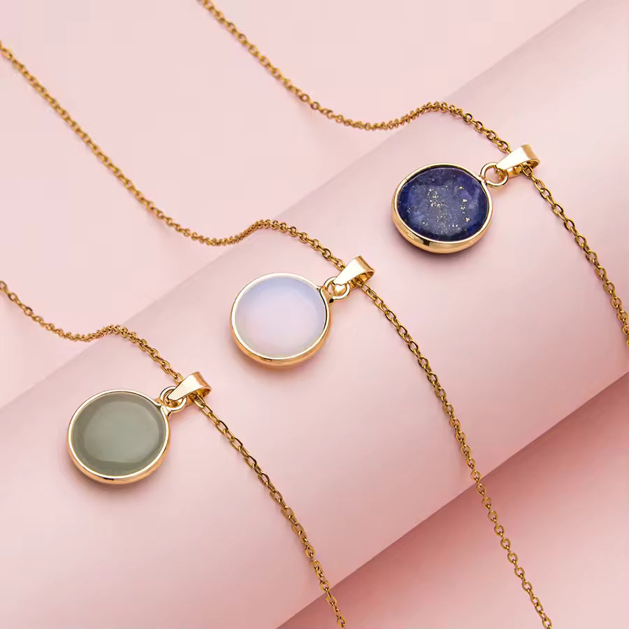 1pc Stainless steel adjustable natural crystal stone gemstone agate round pendant necklace for women and men